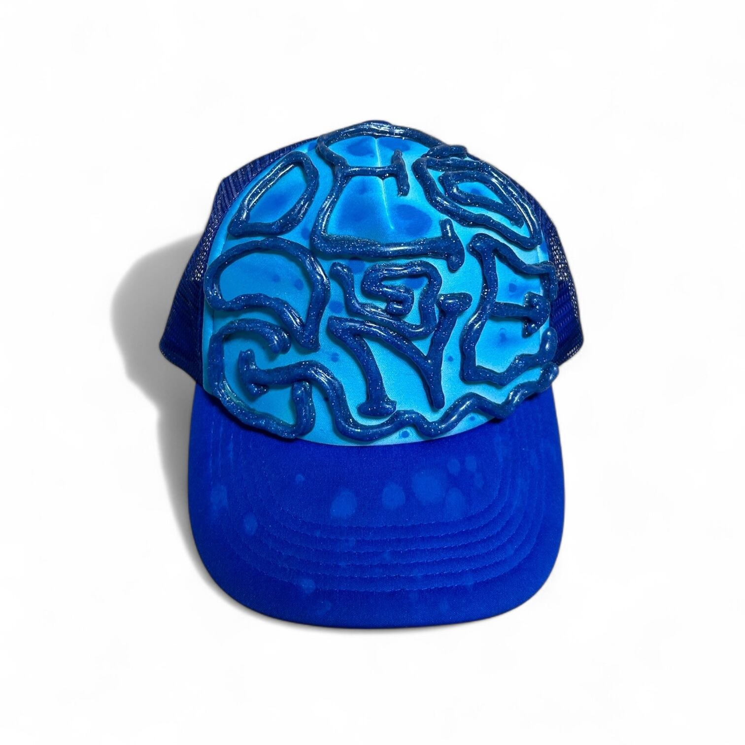 深いブルーをベースに、立体的なグルーアートで唯一無二の存在感を放つ3Dキャップ。